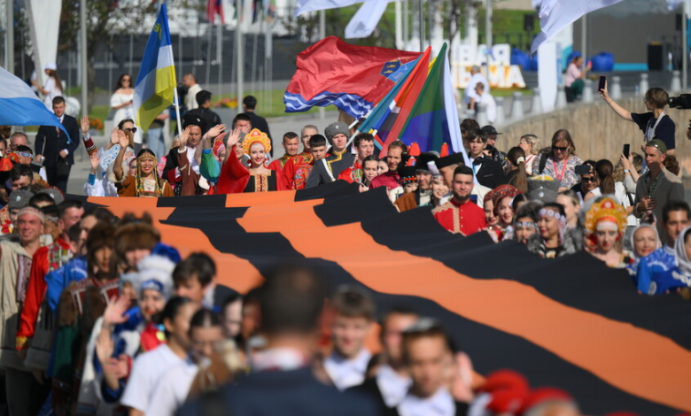 حمل أكثر من 200 مشارك شريط القديس جورجيوس طوله 80 متراً تكريماً للذكرى الثمانين للنصر.