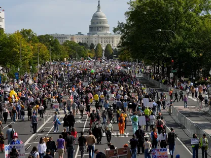 في المقابل سعى الجمهوريون إلى شرح المشاركين بأنهم بعيدون عن التيار الرئيسي للسياسة الأميركية، وأنهم سبب الإغلاق الحكومي الممتد الآن في يومه الثامن عشر. ومن البيت الأبيض إلى مبنى الكابيتول وصف القادة الجمهوريون المشاركين بأنهم “شيوعيون” و”ماركسيون”، واعتبروا أن الديمقراطيين مدينون للجناح اليساري المتطرف باستمرار الإغلاق لاسترضاء القوى الليبرالية. قال رئيس مجلس النواب مايك جونسون: “أشجعكم على مشاهدة ما نسميه مسيرة كراهية أميركا”.
