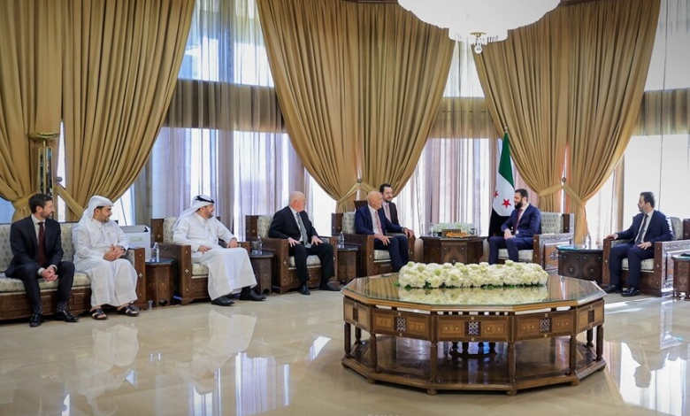 بحث الرئيس السوري أحمد الشرع الاثنين في دمشق مع مندوب الولايات المتحدة إلى سوريا توماس باراك المستجدات الأخيرة في المنطقة والقضايا ذات الاهتمام المشترك.