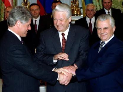 وفي يناير 1994 سعى كلينتون إلى موسكو لتوقيع الاتفاق الثلاثي، لكنه حين عُدِي من براج إلى موسكو توقف في كييف حيث استقبله كرَفتشوك وزملاؤه، فأكد كرَفتشوك التزامه بالاتفاق وتجنب أي خداع في اللحظة الأخيرة لاحقاً، فيما بدا كإرهاصات لضمانات ثلاثية بين الولايات المتحدة وروسيا وبريطانيا.