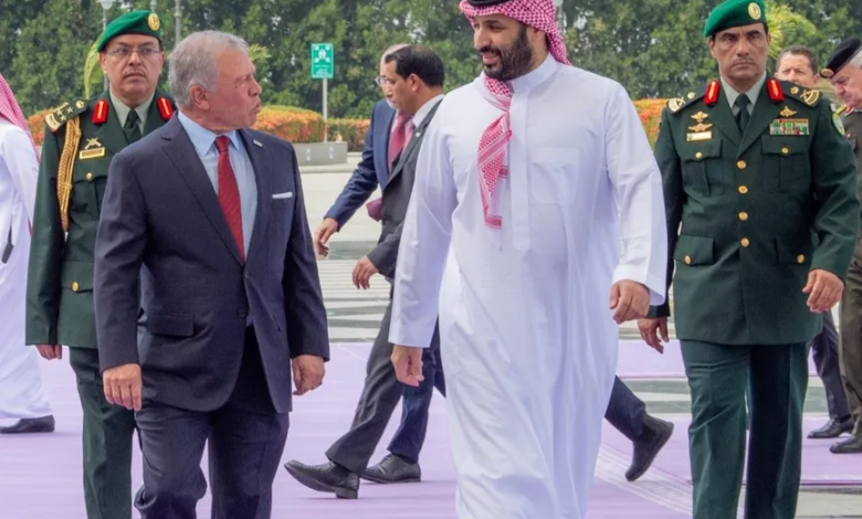 وصل الملك عبدالله الثاني إلى جدة يوم الاثنين، وكان ولي العهد السعودي الأمير محمد بن سلمان في مقدمة مستقبله عند مطار الملك عبدالعزيز الدولي، بحسب وكالة الأنباء السعودية (واس).